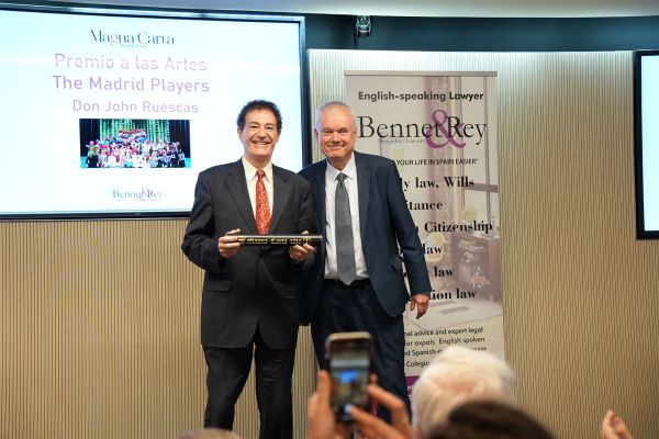 The Madrid Players received the Arts Award in recognition of their tireless efforts over sixty years to bring people in Madrid of all ages great works of English-language drama, seeing theatre as a a powerful weapon for breaking down frontiers, bringing cultures together, strengthening friendship between different peoples, and deepening mutual understanding.