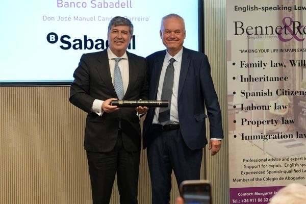 The Business Award is given to BANCO SABADELL for its genuine and sustained commitment to the British community in Spain, its role as a facilitator of international operations, its dedication to service now adapted to the needs of a global society, and its support for the economic and daily lives of British citizens in Spain, promoting trust, security, and opportunities.